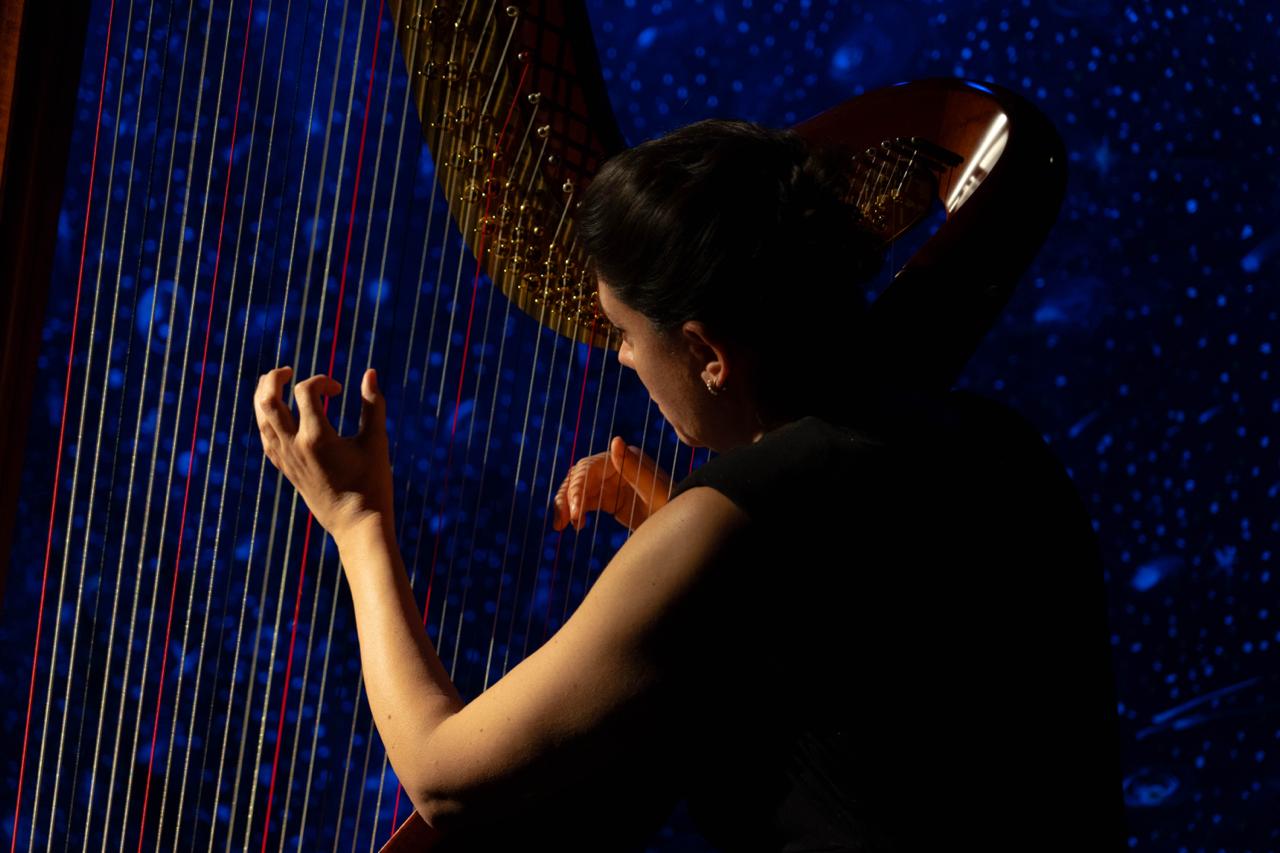 Uno spettacolo che ha per protagonisti un attore e una musicista che all’arpa esegue alcune tra le più belle melodie dedicate a questa distesa, buia e luminosa, che sovrasta il nostro pianeta.Alla narrazione e ai disegni dal vivo sono invece affidate curiosità, domande e spiegazioni che nei secoli hanno provato a svelare la misteriosa natura di questo Buio Celeste.