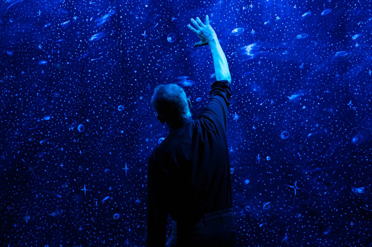 Una scenografia semplice ed essenziale ci fa immergere nel Buio Celeste che ci avvolge e ci appartiene, di cui noi facciamo parte, come una piccolissima, infinitesima parte dell’universo. Un modo per offrire, attraverso questo viaggio, nuove modalità per tornare ad allenare l’occhio e il sentire, stimolando la curiosità e la voglia di scoperta nei confronti di tutto ciò che ci circonda.